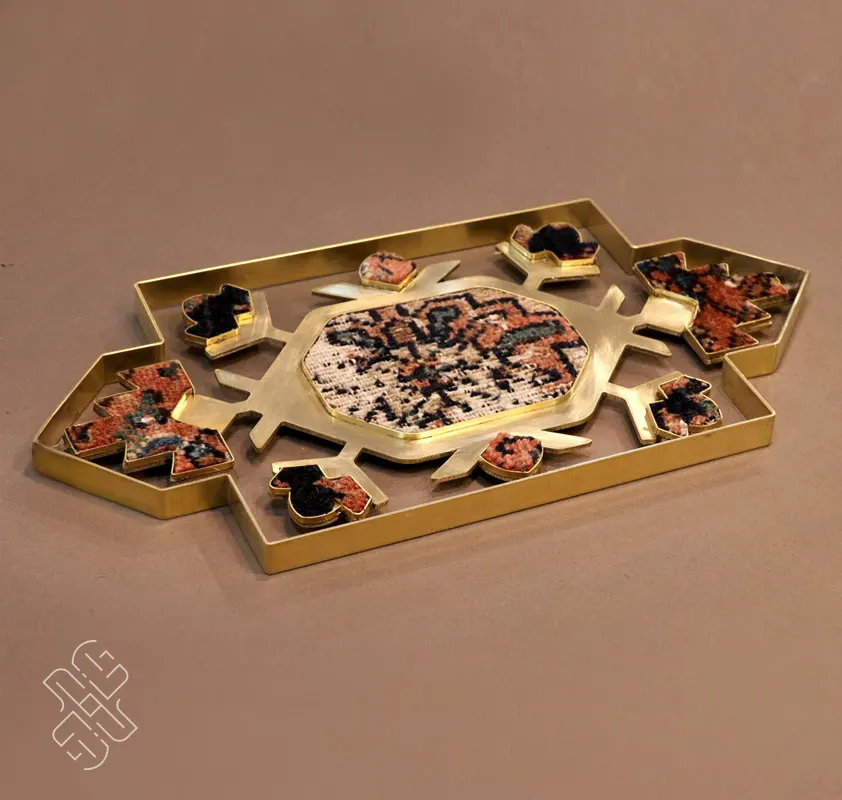 ترکیب فلز برنج و قالی قدمت دار ایرانی